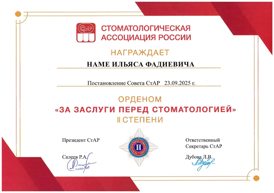 Орден СтАР «За заслуги перед стоматологией» II степени