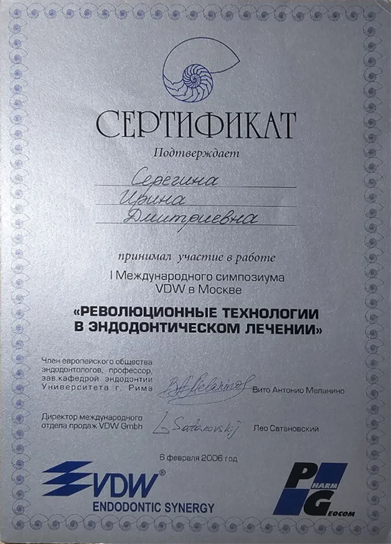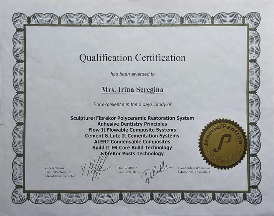 На самом высоком профессиональном уровне владеет методами обработки корневых каналов, использует современные методы диагностики и лечения кариеса и его осложнений, владеет сложными методиками художественной реставрации для пломбирования и восстановления формы зубов. Проводит бережное и качественное эндолечение корневых каналов с последующим пломбированием.
